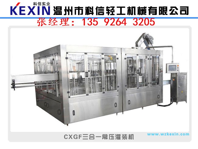 在日常生活中,可樂雪碧還有汽水以及市場上異?;鸨碾u尾酒,通常都是采用等壓灌裝的方式。由沖瓶,灌裝,封口一體機來完成,簡稱三合一灌裝機。等壓灌裝機是在高于大氣壓的條件下,首先對包裝容器充氣,使之與貯液箱內氣壓相等,再依靠液料的自重流進包裝容器內的罐裝方法。